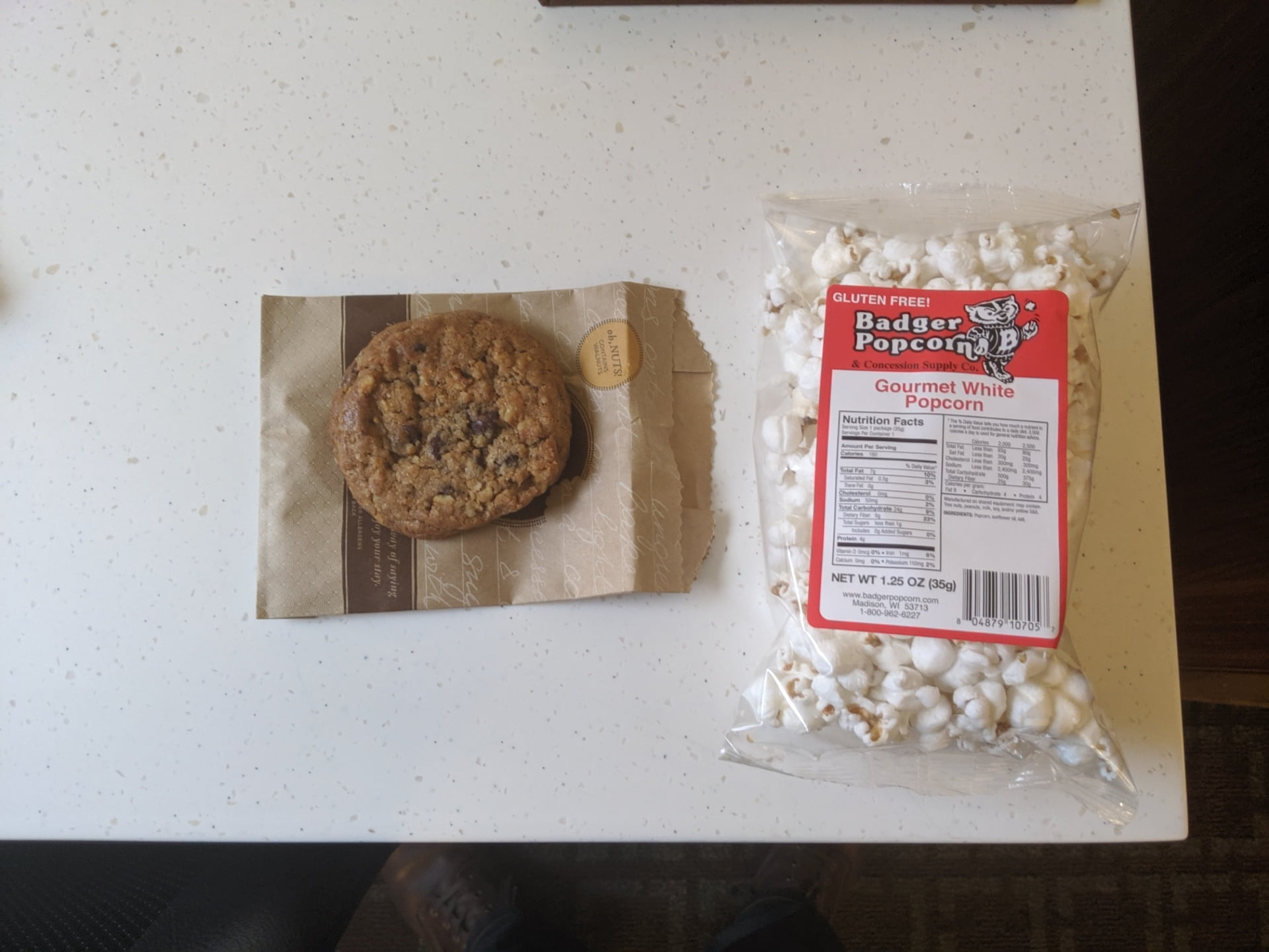 The welcome goodies. The cookies are always warm, I like that.