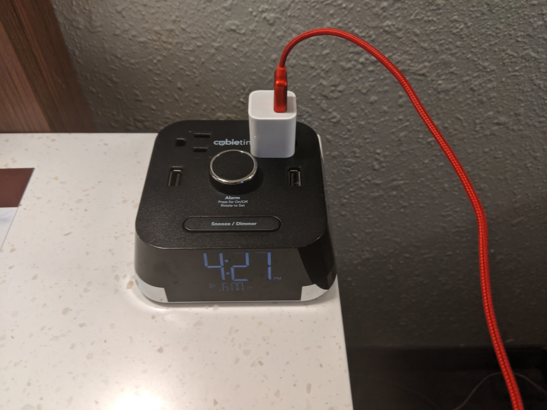 I liked this style of plug near the bed. I also oddly like physical alarm clocks. I don’t use them on the road, but I like to be able to see one.
