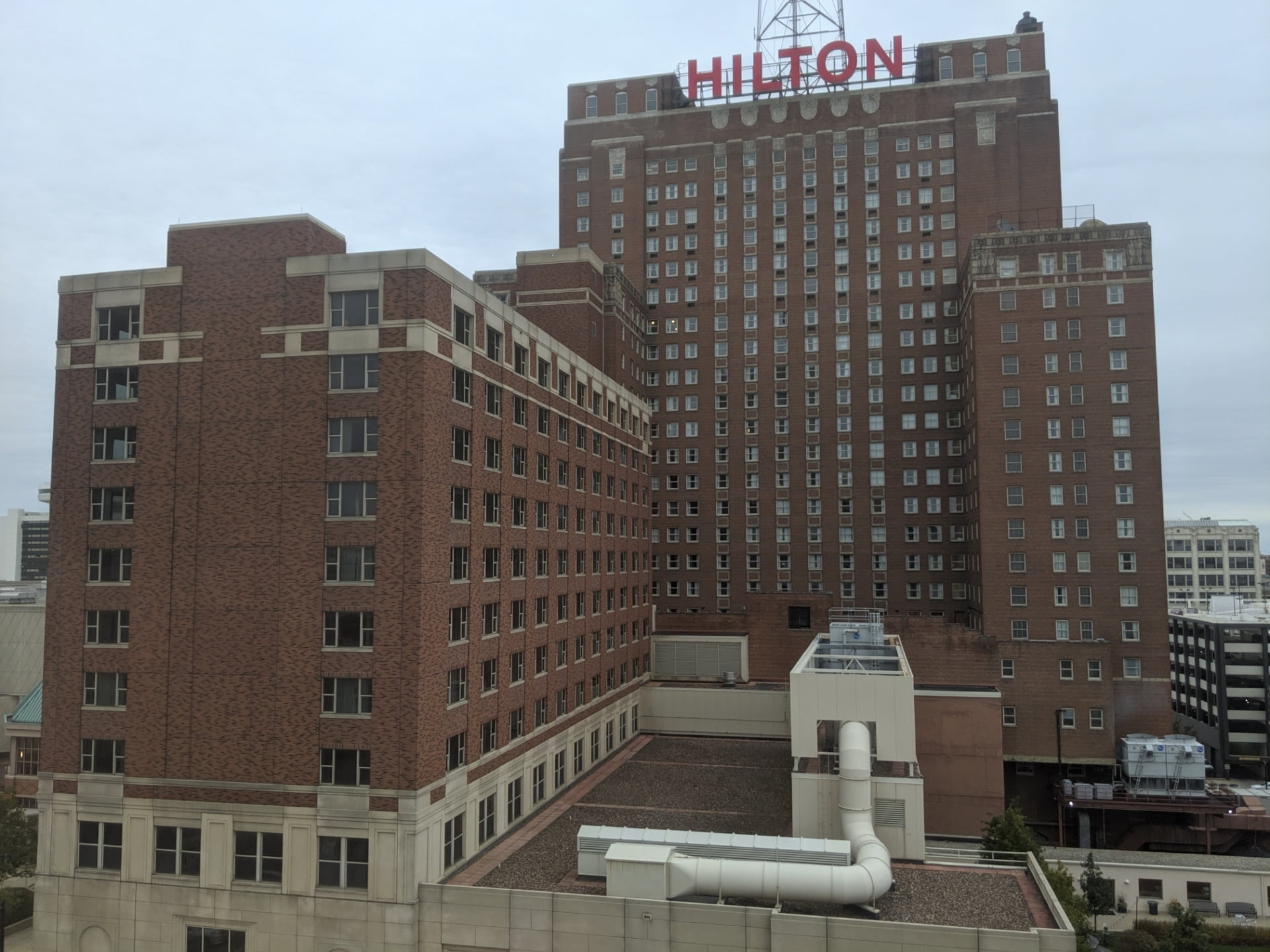 The view from my room was the Downtown Hilton. I’ve stayed there many times too, the lobby and public areas are fantastic but the rooms are getting a bit worn. They are very old, but in a good way. It just needs a good paint and refresh.