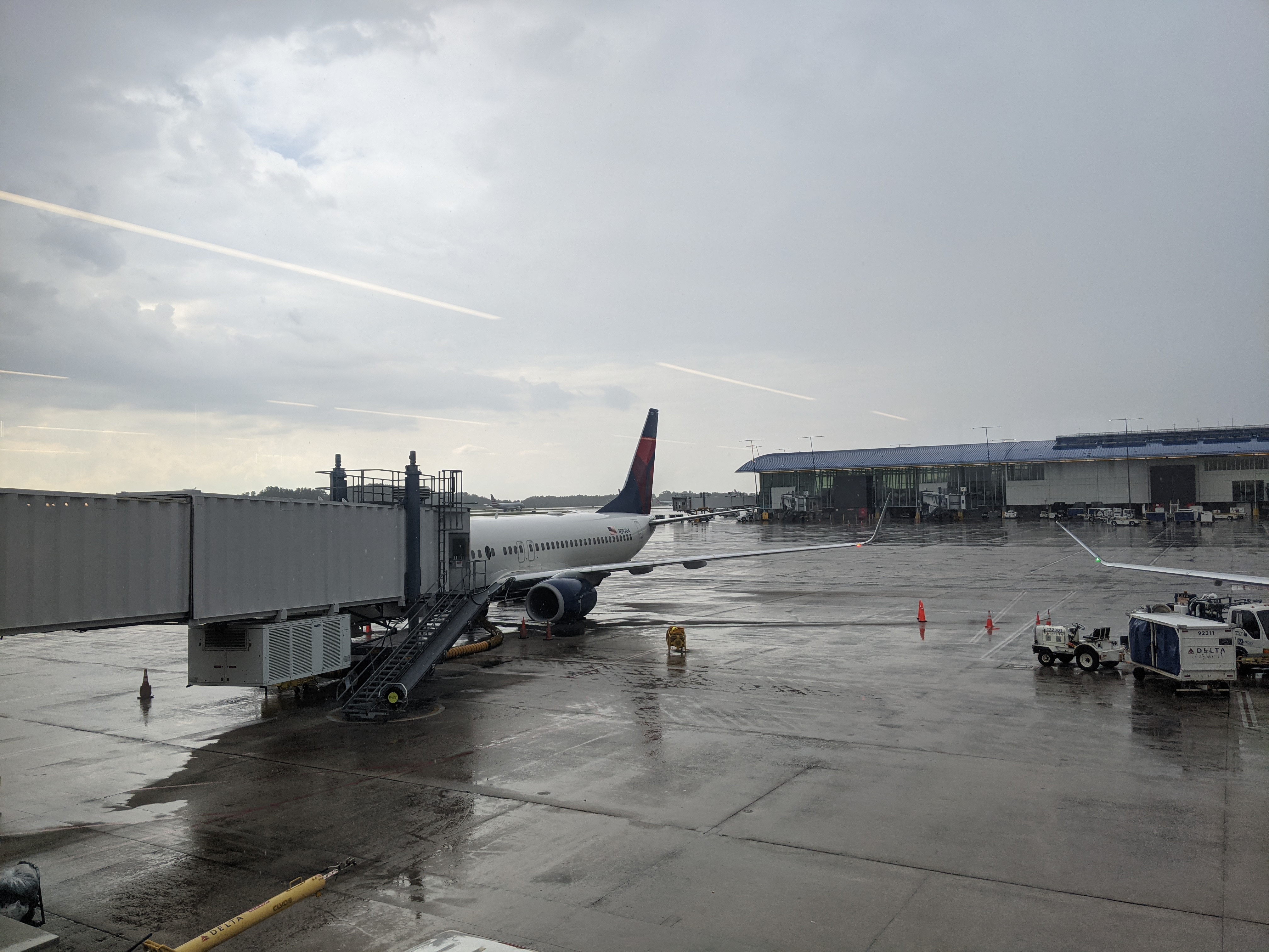 The rain was brief but torrential. Our 737 waiting to give us a ride to Utah.