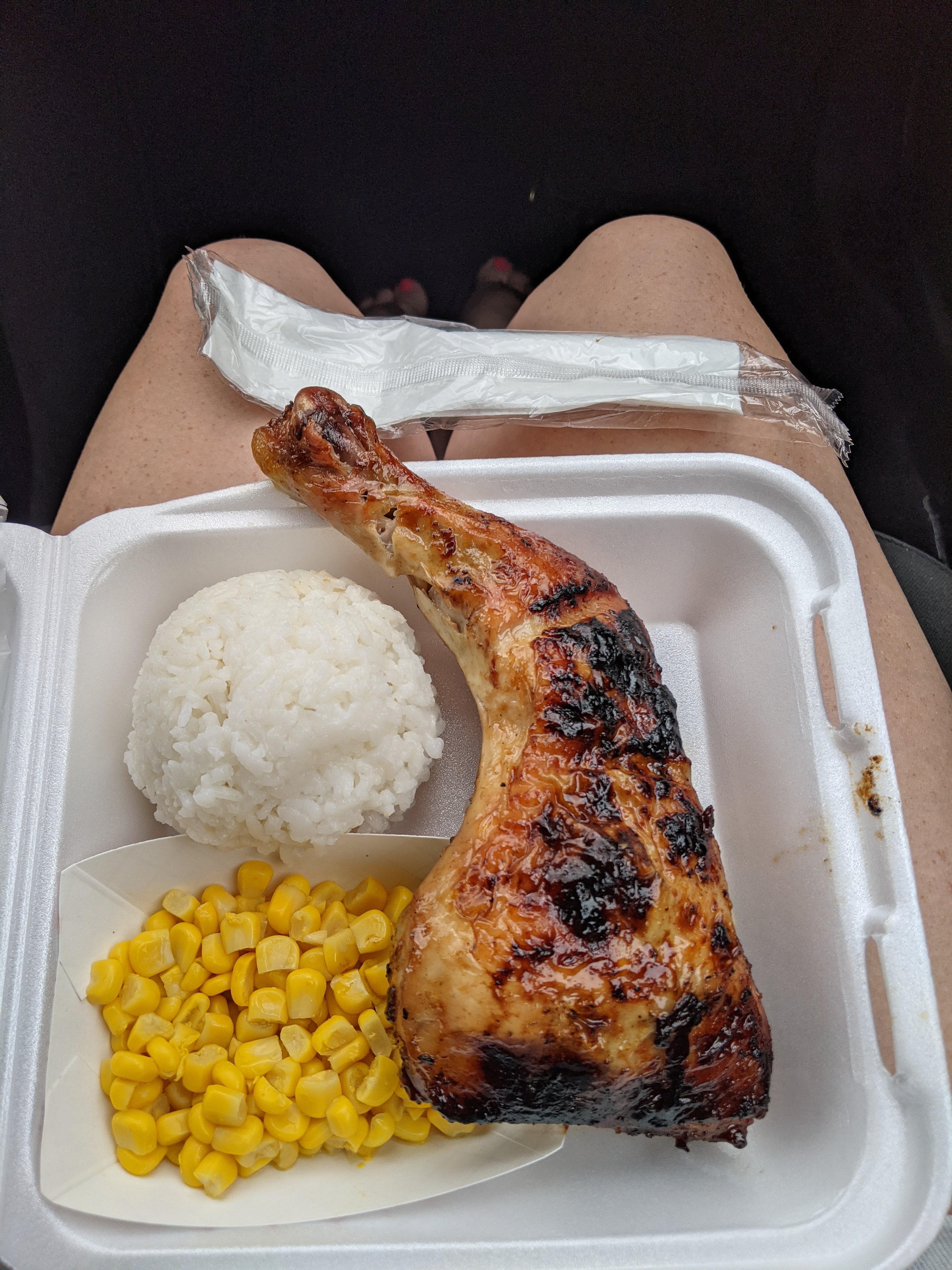 After that, we saw a stand in a nearby parking lot selling huli chicken, or Hawaiian BBQ chicken, and decided to get some for lunch.