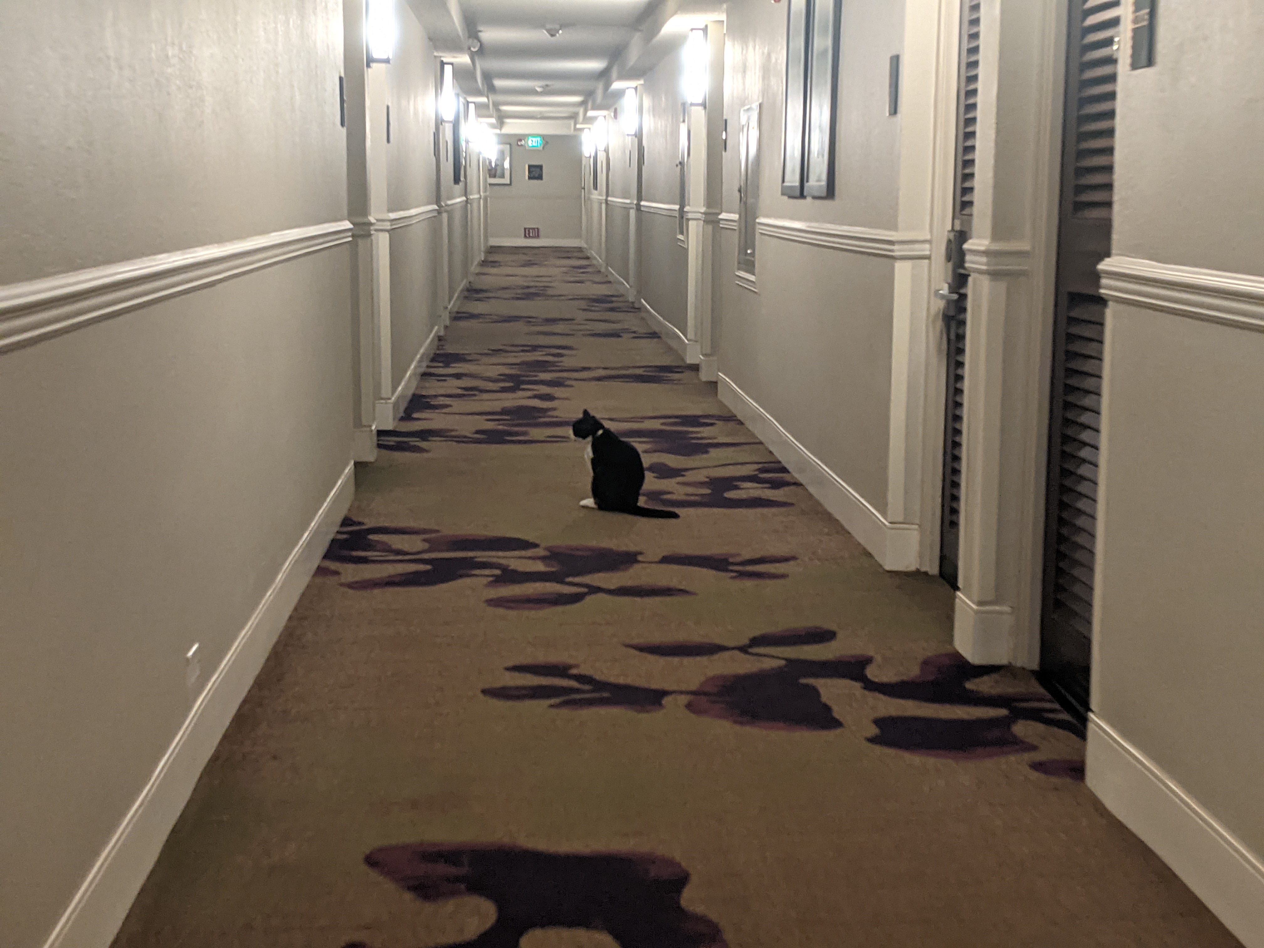 After dinner, we crashed at the hotel for the night, saying goodnight to the stray cat in the hallway on the way to our room.