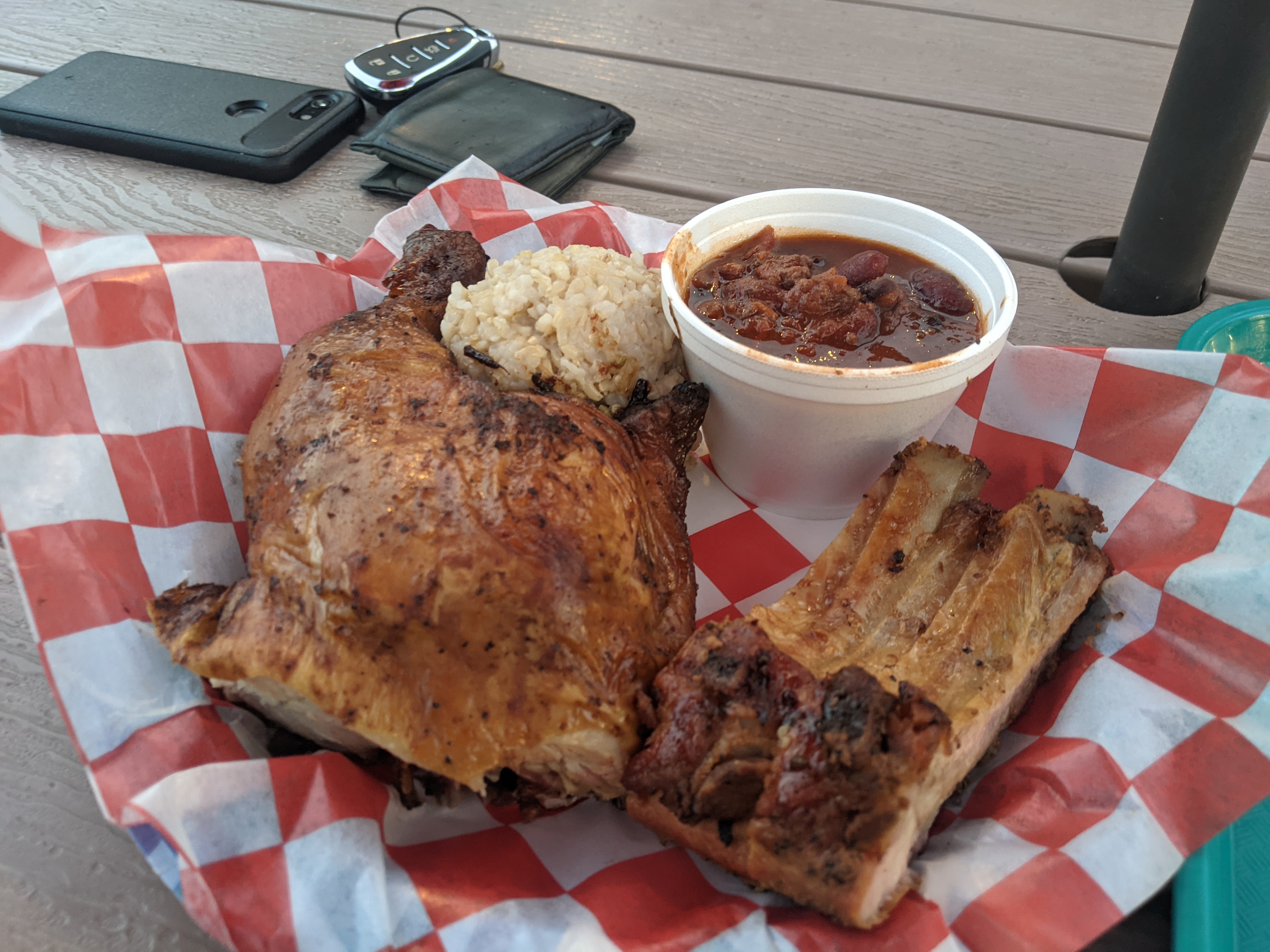 We decided to stop at Chicken in a Barrel BBQ for some Hawaiian BBQ chicken. I had an excellent BBQ chicken burrito, and James had a quarter chicken and some ribs.