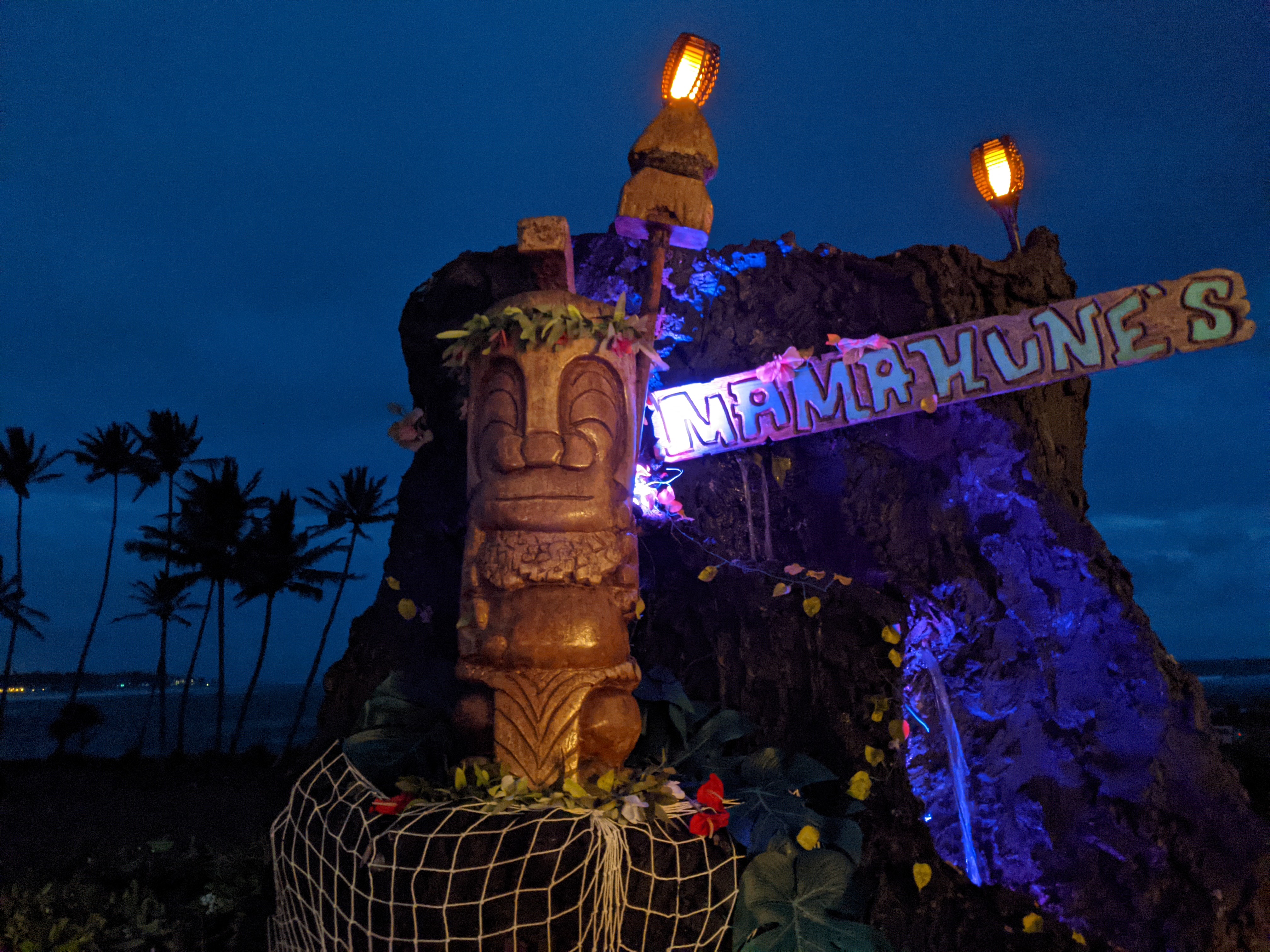 We were pretty tired from traveling all day, but we decided we should get something light for dinner and take advantage of our free Mai Tais at the hotel bar, Mamahune’s.