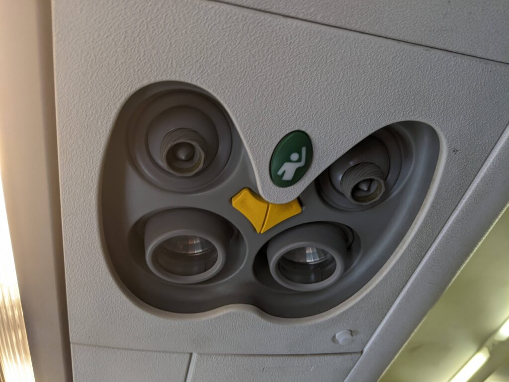 On the left side of the plane, even though there’s only a single seat, there are two air vents and lights.