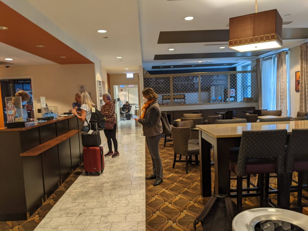 The lobby is not on the ground floor of the Hampton Inn Chicago Theater. Inside you’ll take the elevator to the lobby level. All other levels are key-card restricted. I arrived very early in the day, well before check-in but they were able to get me a room. Everyone else was checking out. I was expecting to just drop my luggage and head to work, but they took good care of me.