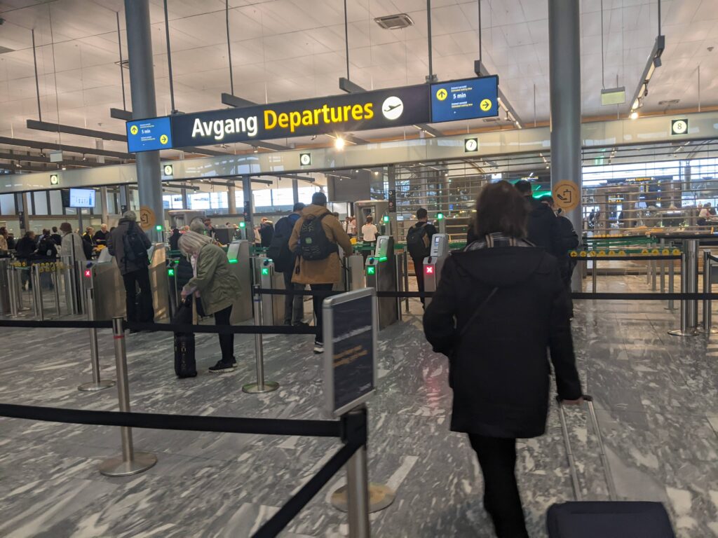 We had already checked-in using the Norwegian app so we didn’t need to stop at the counter. We headed right for the security line. Like the vast majority of Europe, there are automated gates.