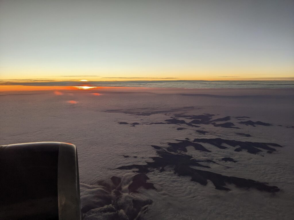 Outside we were passing over the Scottish Highlands. The sunset out side would last for hours, we’re chasing the sun on this flight to Atlanta. We got some really great views throughout the trip.