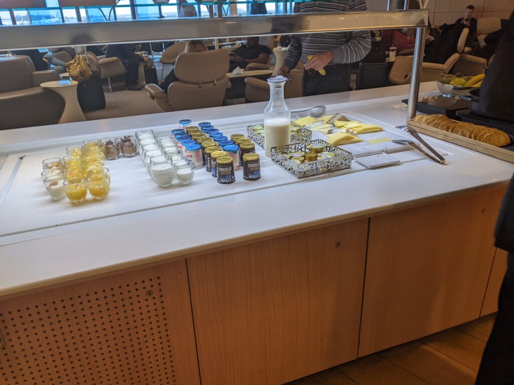 The main buffet area at the Air France lounge here at CDG Terminal 2E is well stocked with light to medium snacks. This lounge doesn’t have full meal size items, but you could make a very good sized snack from the items provided.