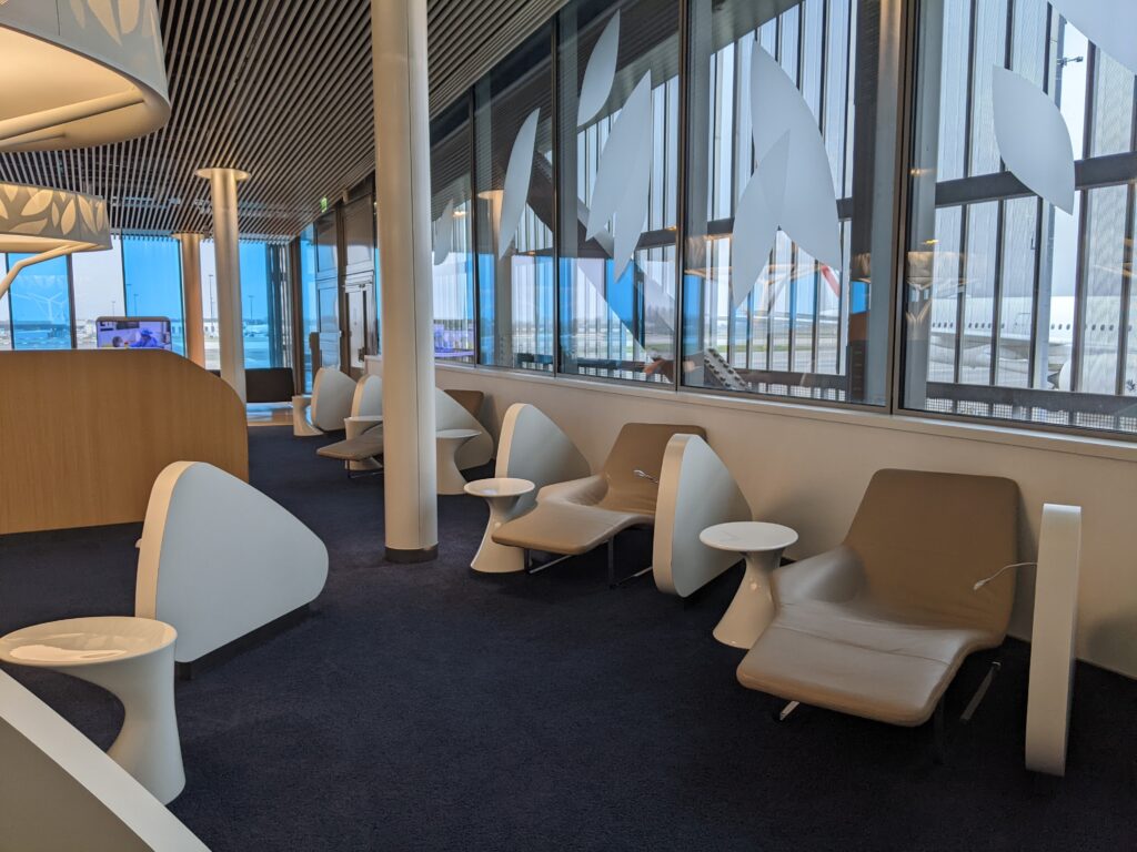 The Air France lounge is comfortable and quiet. It has a decent food and drink selection along side good views of the various aircraft. The lounge is also huge so you’ll easily find a place to relax.