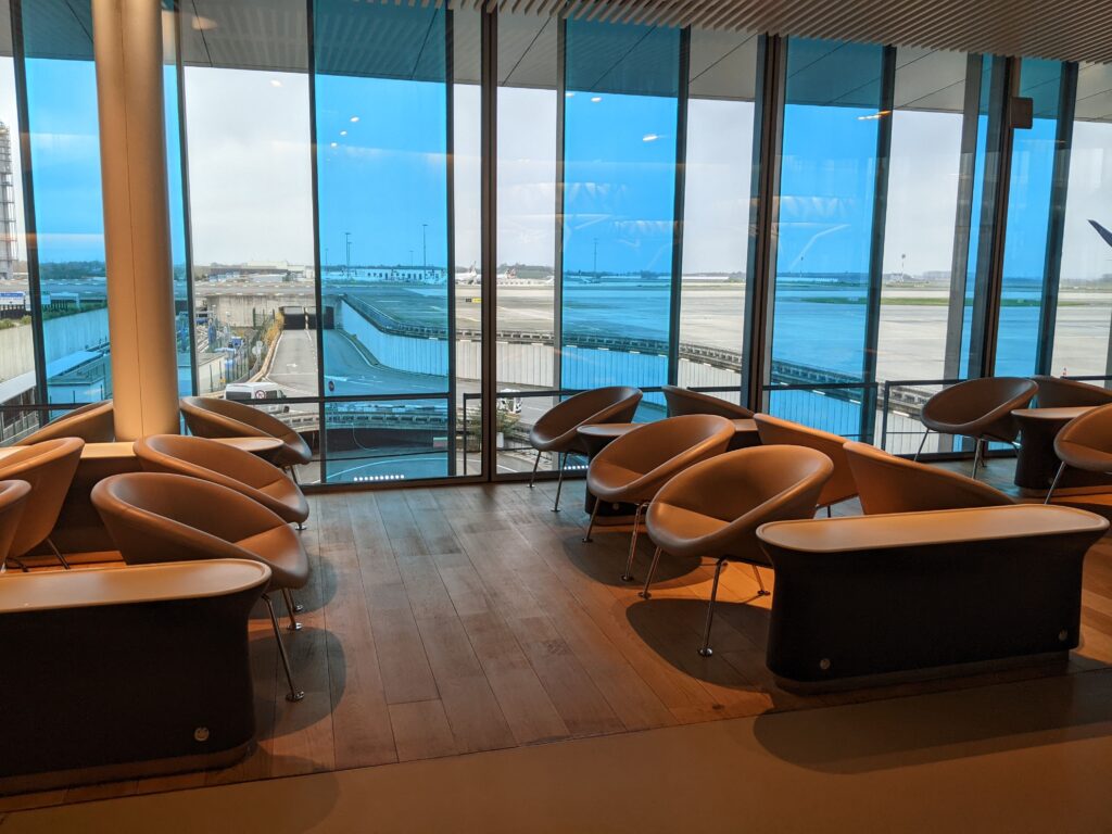 My favorite areas are the seats by the windows in Area 1 and then the Relaxation space in Area 5. They both have good views of the airplanes and good seating. The Relaxation space also has nice comfy reclined day bed style chairs while the window seats in Area 1 have comfortable chairs along with tables for snacks and drinks.