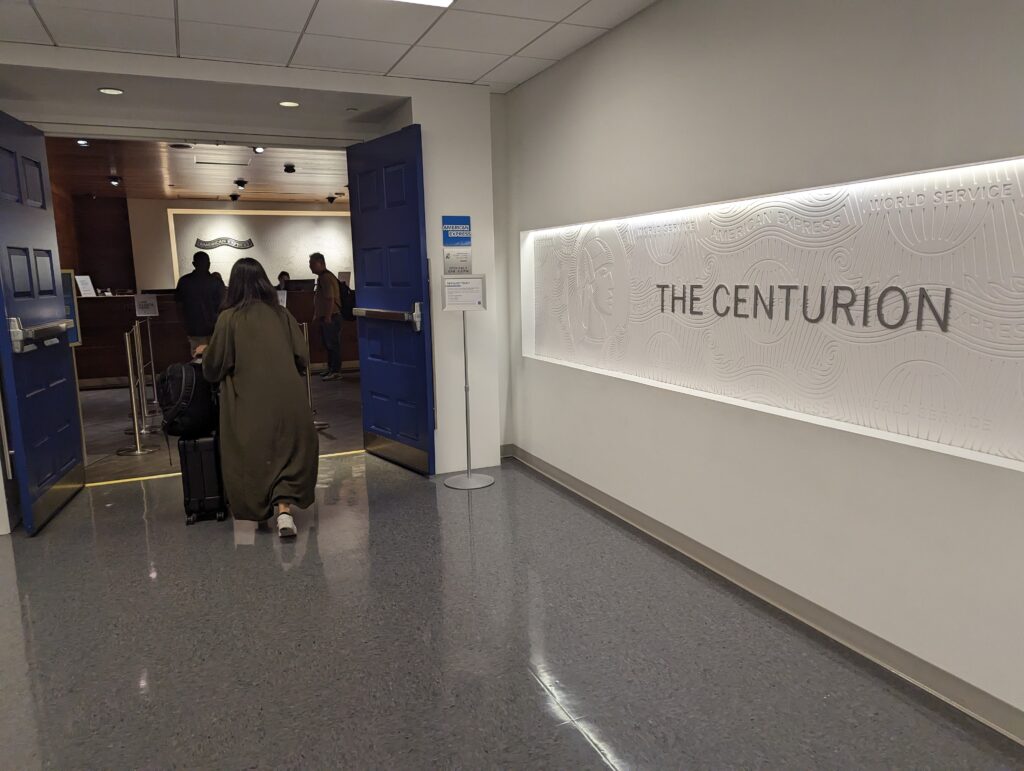 To get to the Centurion Lounge, you have to go into the iS Duty Free store that’s at gate D12. along the back wall there is a hallway, at the end of the hallway there is an elevator. Go into the elevator and go down one floor. Once here, there is a hallway, head down the hallway and you’ll see the entrance to the Centurion Lounge.