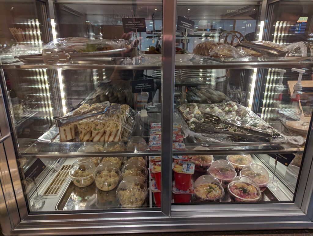 In the very back of the Tallinn Business reLounge there was a cold case with soft drinks, juice, beer, and wine. Everything here is self service.