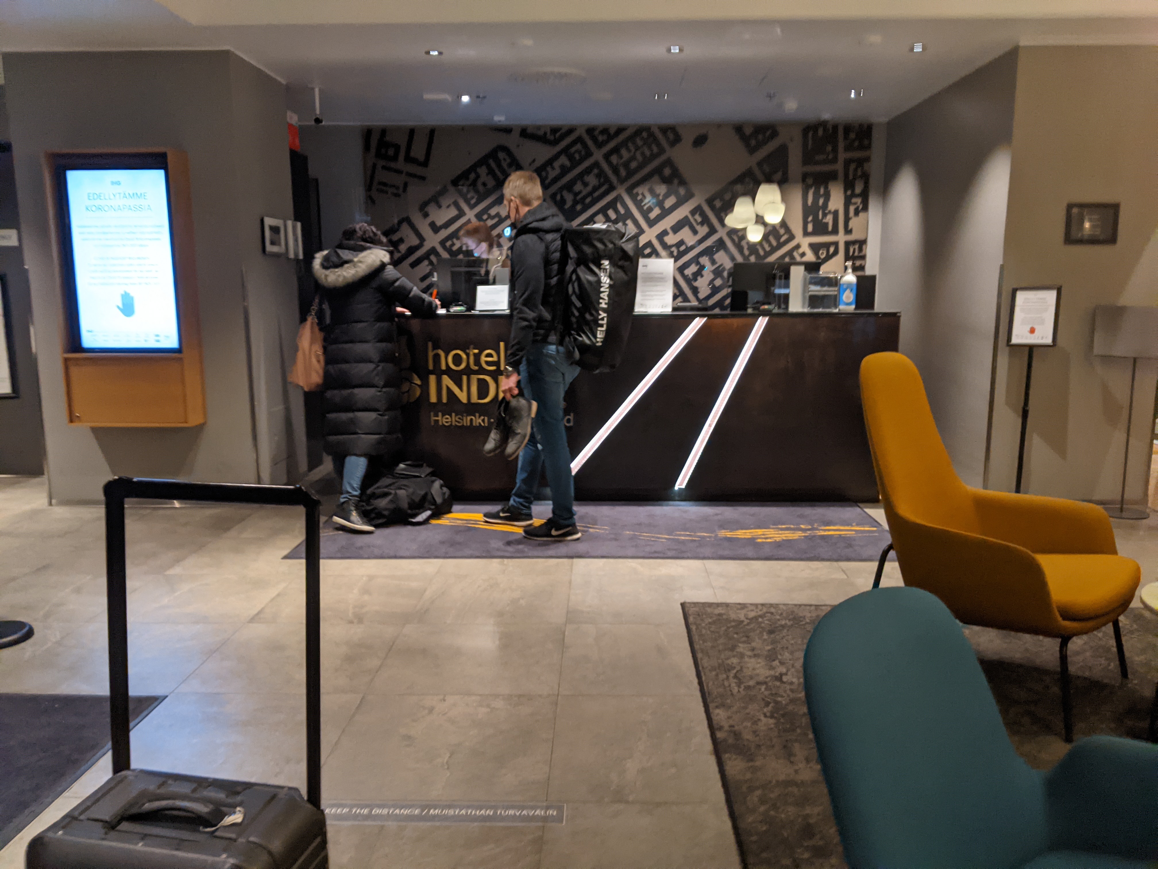 The Hotel Indigo Helsinki is modern and trendy. It has lots of Nordic flair. The check in process was fast and easy. We were told about the breakfast options, the hotel features, and the bar.