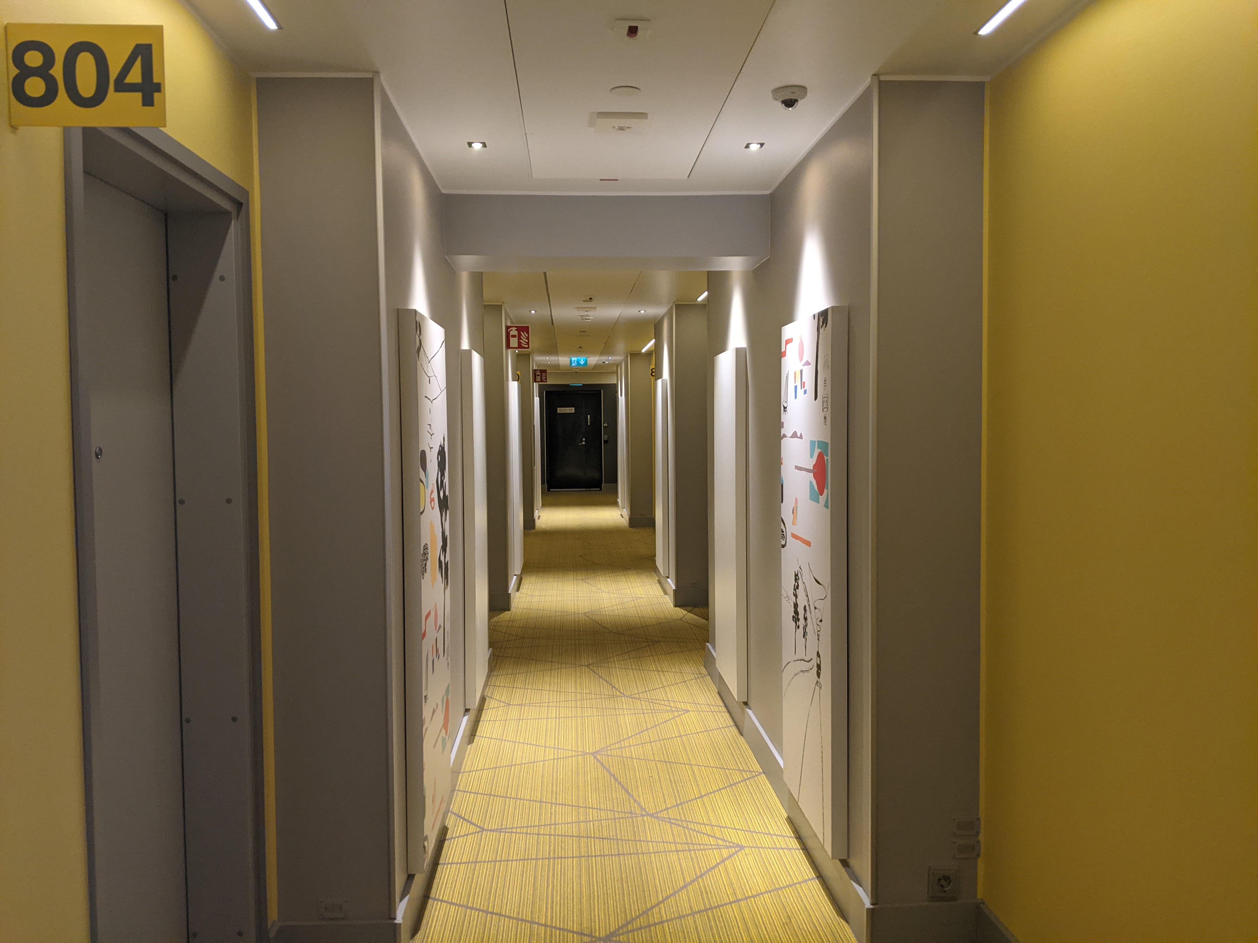 The hallways are again bright and clean. There’s a lightly industrial feel to it all but it’s interlaced with local flavored art.